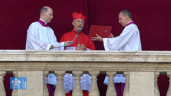 Според традицијата, Доминик Мамберти, високиот кардинал ѓакон се појави на балконот на „Свети Петар“ и го објави историскиот момент со зборовите „Habemus Papam“ – „Имаме папа“.