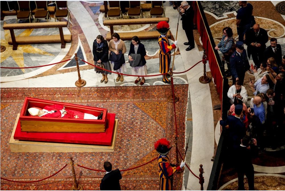 Ватикан потврди дека папата Франциско починал околу 7.30 часот во понеделникот на Велигден од мозочен удар што довел во кома. Неговото тело оттогаш е преместено во базиликата Свети Петар во Ватикан на тридневен ритуал пред неговиот погреб.