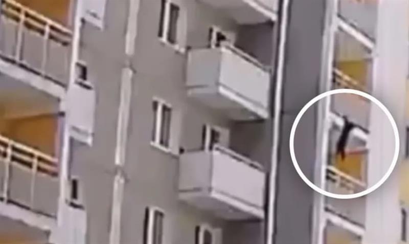 На социјалните мрежи се појави видео од дете кое прескокнало преку оградата на тераса на шестиот кат на облакодер во Ангарск и останало беспомошно да виси.