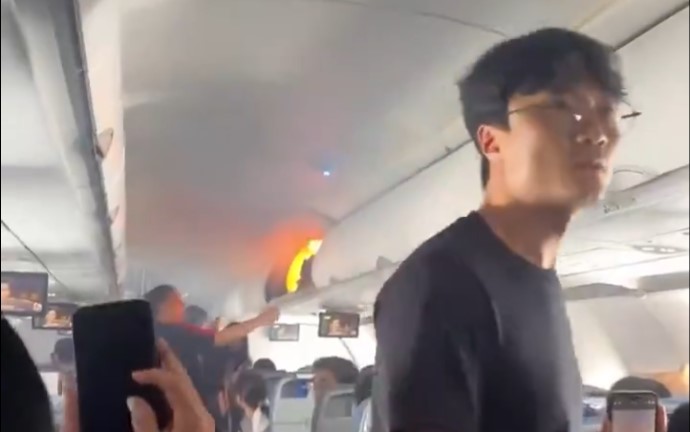 Паника завладае на небото откако во авионот „Ербас А321“ кој леташе на релација Ханжу (Кина) до Инчон (Јужна Кореја) изби пожар во еден од багажниот простор. Сето тоа се случувало на висина од 10.000 метри.