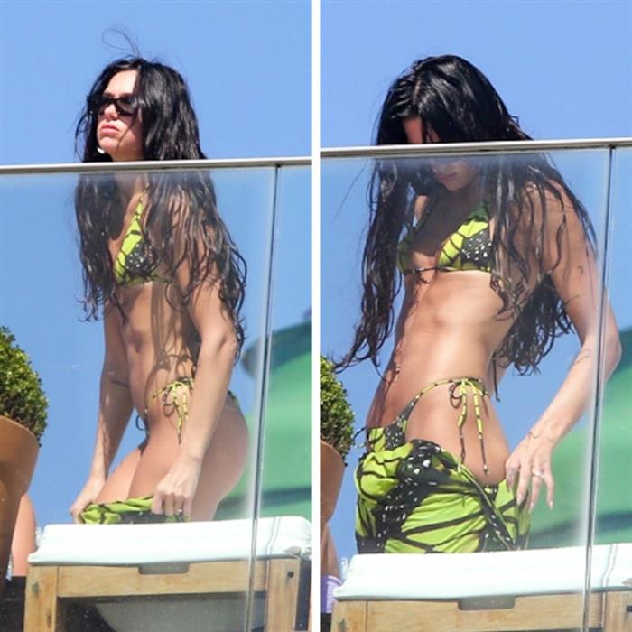 Пејачката беше фотографирана во црно-жолти бикини. Целиот изглед го комплетираше со црни очила за сонце додека се опушташе на лежалка.