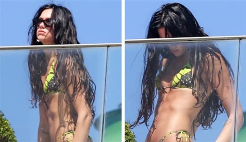 Пејачката беше фотографирана во црно-жолти бикини. Целиот изглед го комплетираше со црни очила за сонце додека се опушташе на лежалка.