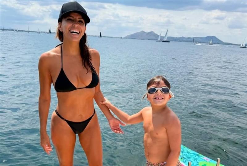 Таа позираше со својот син Сантијаго (7). На фотографијата, Ева носи црн дводелен костим за капење и капче, додека нејзиниот син ја држи за рака. На втората фотографија, тие возеа SUP.