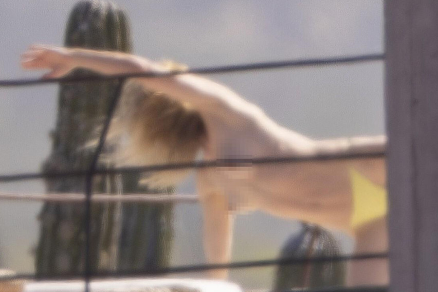 Парот бил фатен додека уживале во сонцето во Лос Кабос, а моментот стана интригантен кога актерката го соблекла горниот дел од бикинито и вежбала во топлес издание. По вежбите за истегнување, актерката исто така во топлес направила и селфи фотографии.