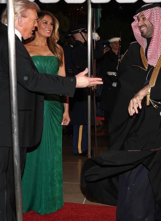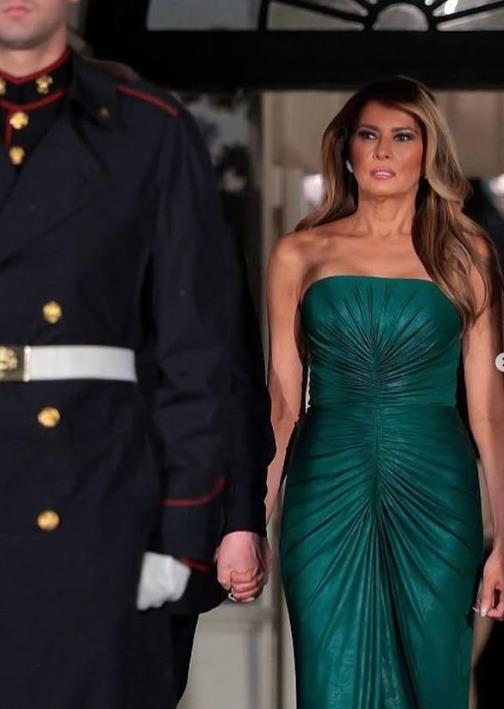 Иако деловната елеганција е нејзин заштитен знак, Меланија овој пат одлучи да направи исклучок и избра гламурозна тоалета за да го пречека саудискиот принц.