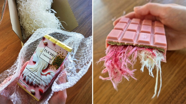 Откако светот полуде по познатото дубајско чоколадо, на социјалните мрежи почна да кружи нов хит, а некои веќе тврдат дека ќе го нокаутира чоколадото од Дубаи. Новиот десерт е познат како „Ангелска коса“. Тоа е всушност рачно изработено бело чоколадо од белгискиот производител „Tucho“.