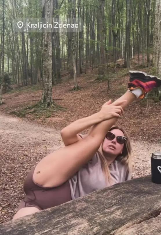 Бујната Нивес во природа, опкружена со зеленило и свеж воздух,се опушти на клупа и позираше во својот препознатлив стил. Сексапилната Хрватка покажа колку може да ја дигне ногата.