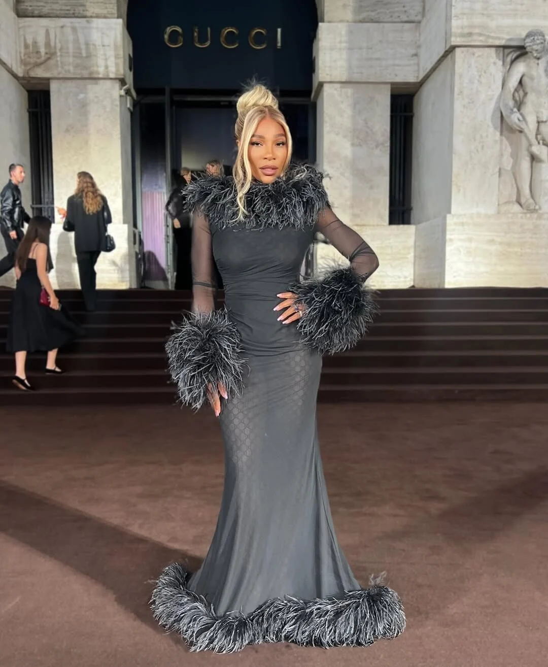 Серена Вилијамс била во центарот на вниманието на отворањето на Модната недела во Милано, истакнувајќи ја својата никогаш послаба фигура во црнa проѕирна тоалета украсена со перја.