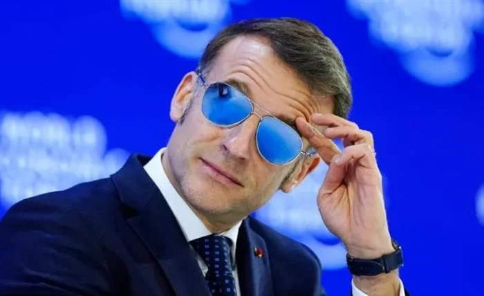 Францускиот претседател Емануел Макрон се обрати на Светскиот економски форум во Давос носејќи сини пилотски очила за сонце со огледала.