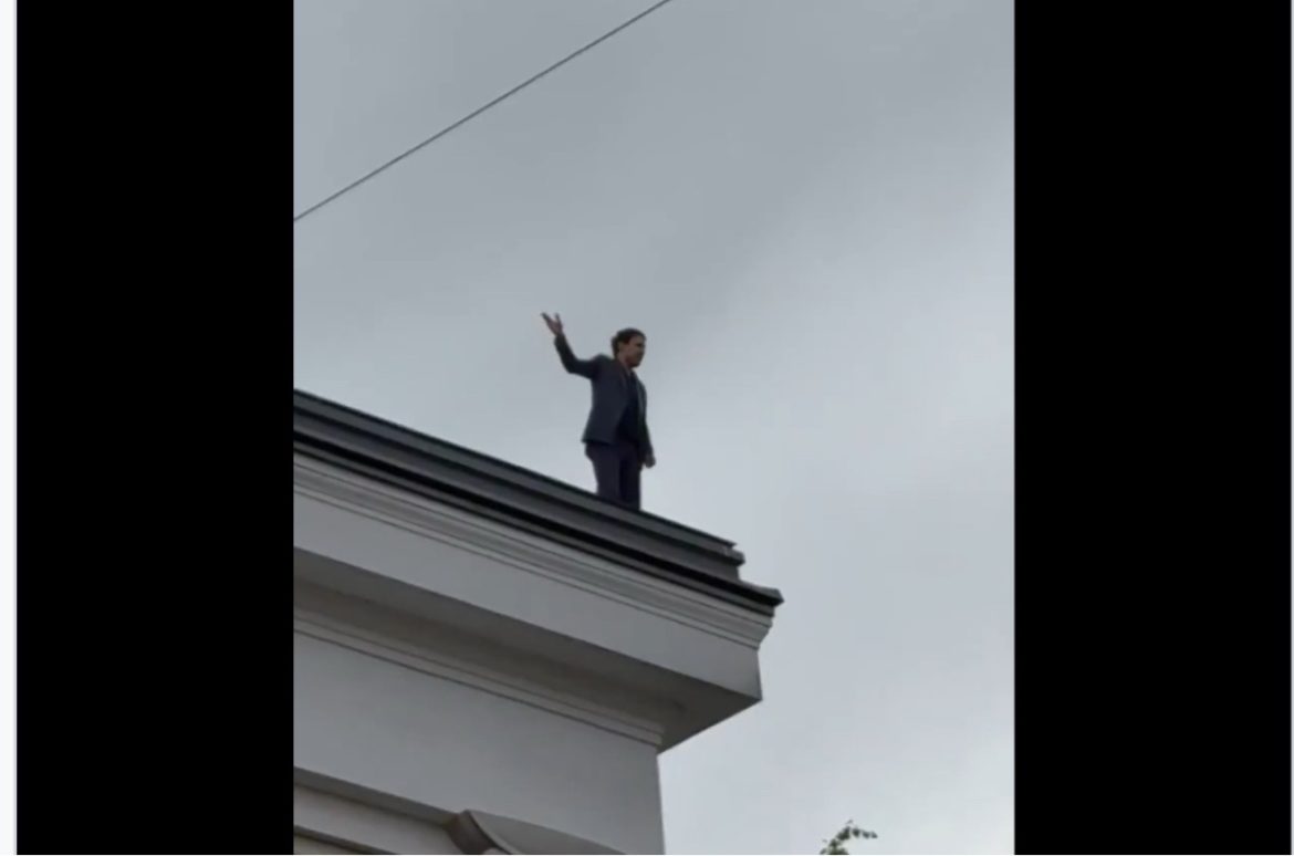 Пратеник на СДС се качи на кровот на Собранието и се закануваше дека ќе скокне (ВИДЕО)