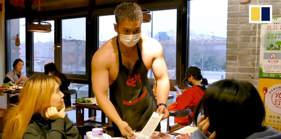 Во ресторанот „Лајан“ во еден од најстарите кинески градови Сијан работат мускулести машки модели, кои се облечени само во панталони и престилка. Бодибилдерите привлекуваат многу гости, особено жени, кои постоjано се фотографираат со нив, па дури ги канат да им се придружат на масите.