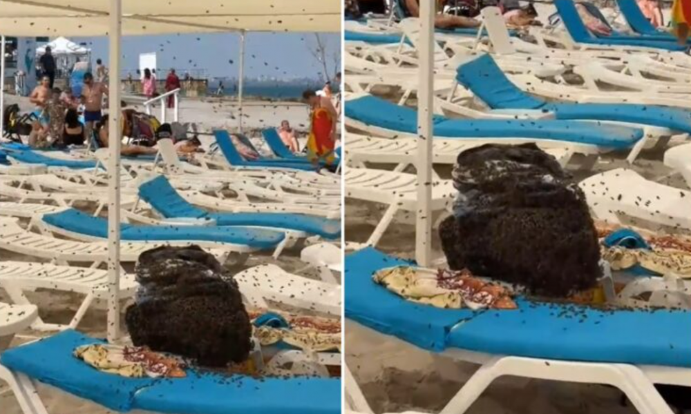 На интертнет се појави видео-снимка од една украинска плажа, каде што семеен излет завршил со неочекуван и застрашувачки инцидент. Имено, семејство кое минатиот викенд уживало на локална плажа во Украина, по кратко капење се вратило на брегот и наишло на вистински кошмар – нивната торба со ручек била целосно прекриена со стотици пчели.