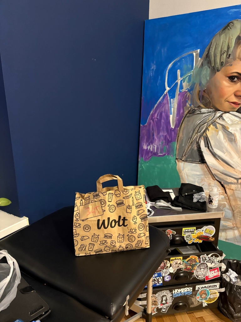 Нејзиното студио не е само работно место, туку простор за медитација. Таму, како што раскажува, секогаш има добра енергија и музика што го држи ритамот да се посвети на дизајните и тетоважите. Тука времето добива друга димензија. Музиката, подготовката на дизајните и самиот чин на тетовирање се нејзиниот начин да се поврзе со себе. Кога термините се надоврзуваат еден на друг, испораката на храна повторно влегува во игра, затоа што за неа апликацијата не е луксуз, туку алатка за паметно родителство и професионален успех. Нејзината врска со платформата за испорака започнала кога се вратила од Лондон, а фактот што сервисот функционира беспрекорно во Скопје, за неа било пријатно изненадување.