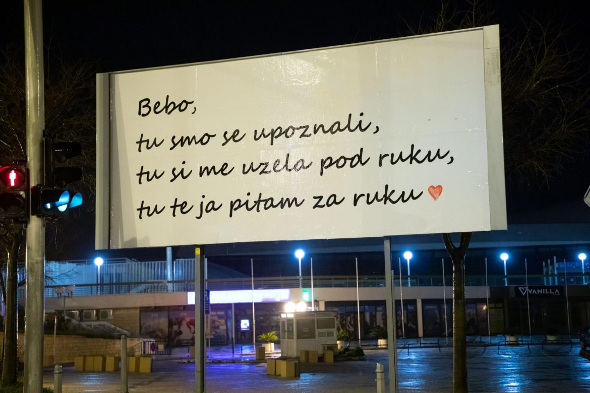 „Бебо, тука се запознавме, тука ме зема за рака, тука ја барам твојата рака“, се вели во пораката.