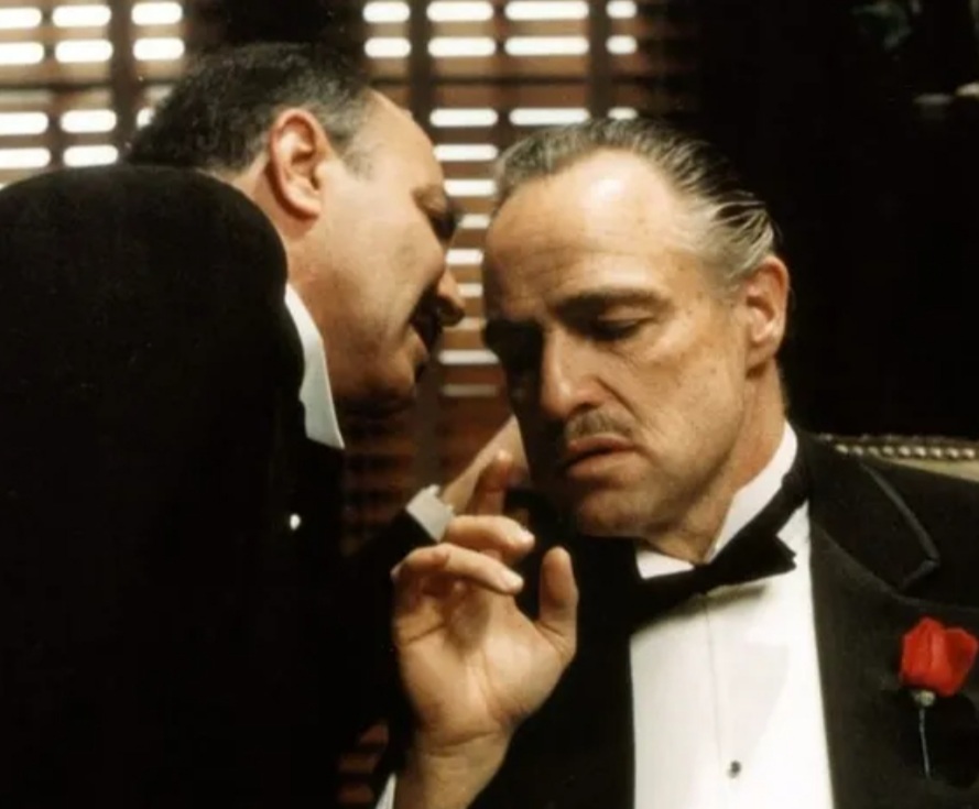 Сцената потсетува на моментот во филмот на Френсис Форд Копола од 1972 година кога продуцентот се буди и ја најде отсечената глава на неговиот чистокрвен коњ во неговиот кревет.