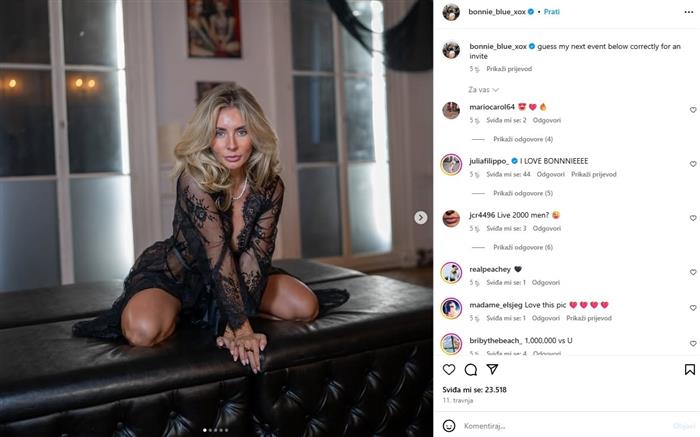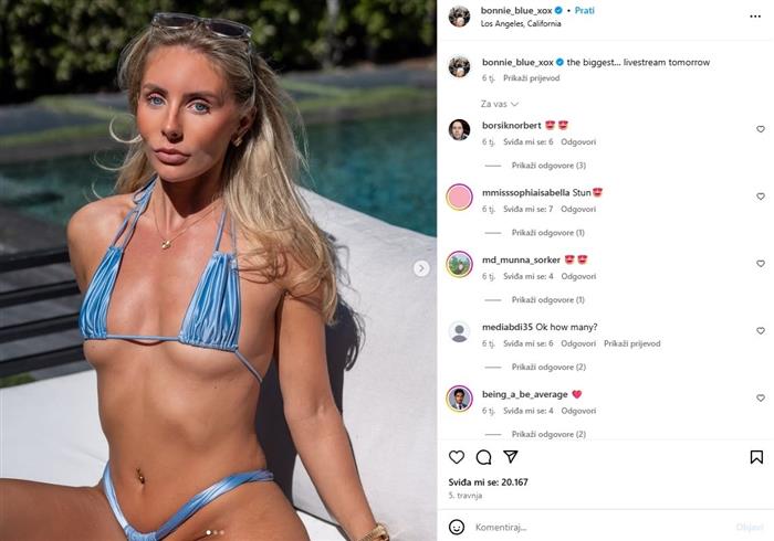 Британската креаторка на содржини на „OnlyFans“, Бони Блу, чие вистинско име е Тиа Билингер (26), повторно го привлече вниманието на јавноста.