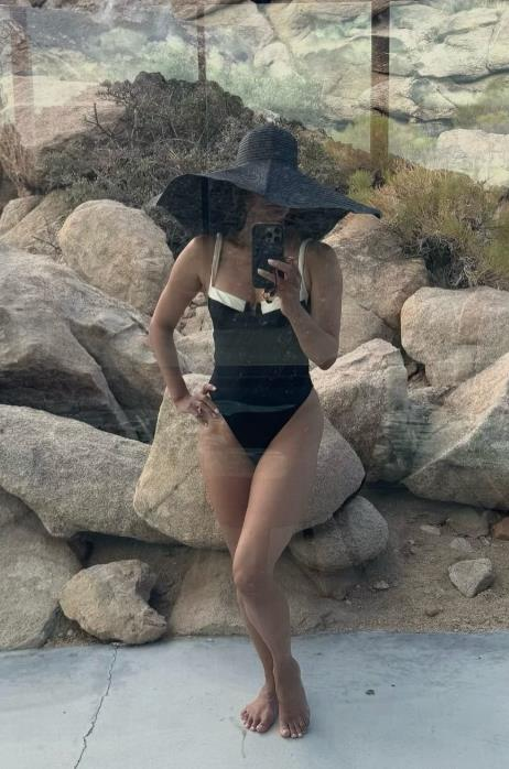 И на фотографијата, Хали позира во пустината, во танга бикини, додека некој ја фотографира како шета.