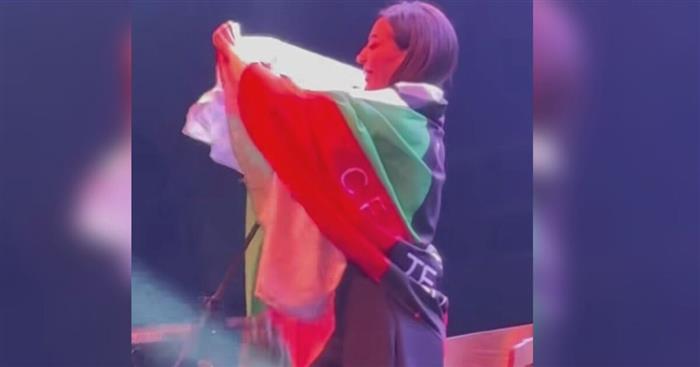 Сепак, откако некој од публиката ѝ подаде бугарско знаме, пејачката се завитка во него.